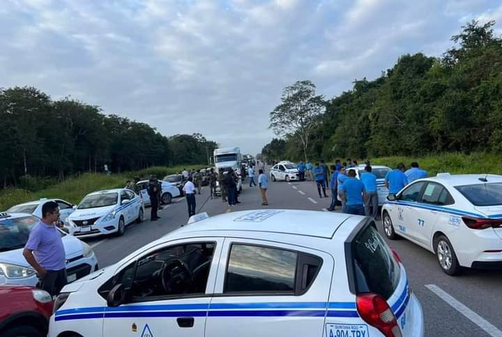 Operadores de taxis de Bacalar bloquearon el tramo que comunica con Buenavista por espacio de una hora para que la autoridad competente escuché y responda a sus demandas.