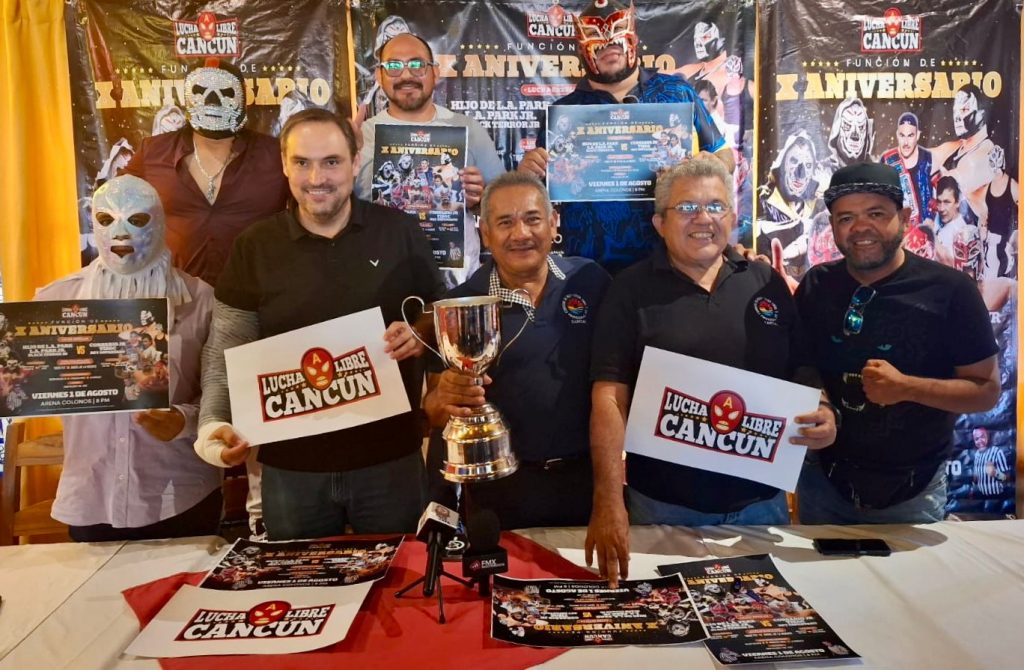 CANCÚN.- La promotora Lucha Libre Cancún (LLC) festejará su décimo aniversario el próximo viernes 1 de agosto, a partir de las 20:00 horas, en su tradicional sede, la Arena Colonos de la SM 89, con una función especial que incluirá cinco intensos combates.