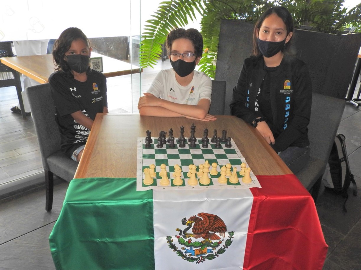 CANCÚN.- Con las maletas llenas de ilusiones, los ajedrecistas quintanarroenses Hiromi Carrillo Aguayo, José Armando Macías Zamora y Carolina Marín Garrido, viajaron a Chicago, Illinois, para participar del 16 al 21 de agosto, en el North American Youth Chess Championship 2021.
