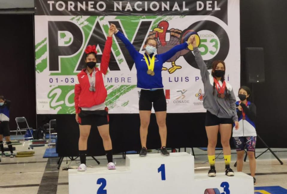 CANCÚN.- AL podio de ganadoras se suben las pesistas de Quintana Roo que participan en el LIII Torneo Nacional del Pavo que se desarrolla en San Luis Potosí, desde el pasado 1 de diciembre y que concluye hoy 3 de diciembre.