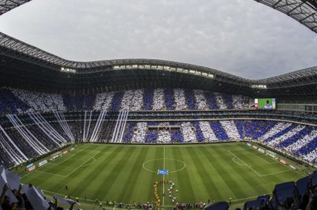 Monterrey, Nuevo Leon.-El Estadio Monterrey comenzó a “verse” este martes por la noche, cuando empleados que trabajan en la remodelación probaron el alumbrado y colocaron el primer rollo de pasto sintético.