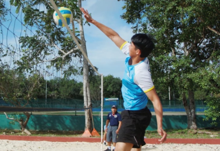 Jorge entrena fuerte día a día en las instalaciones acondicionadas al voleibol de playa en la Unidad Deportiva “Riviera Maya”, con un solo objetivo: clasificar a los Juegos Nacionales Conade 2022.