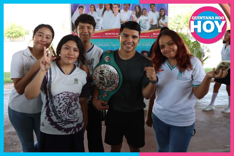 El boxeador ofreció una plática y exhibición a alumnos del Plantel Chetumal Uno del Colegio de Bachilleres.