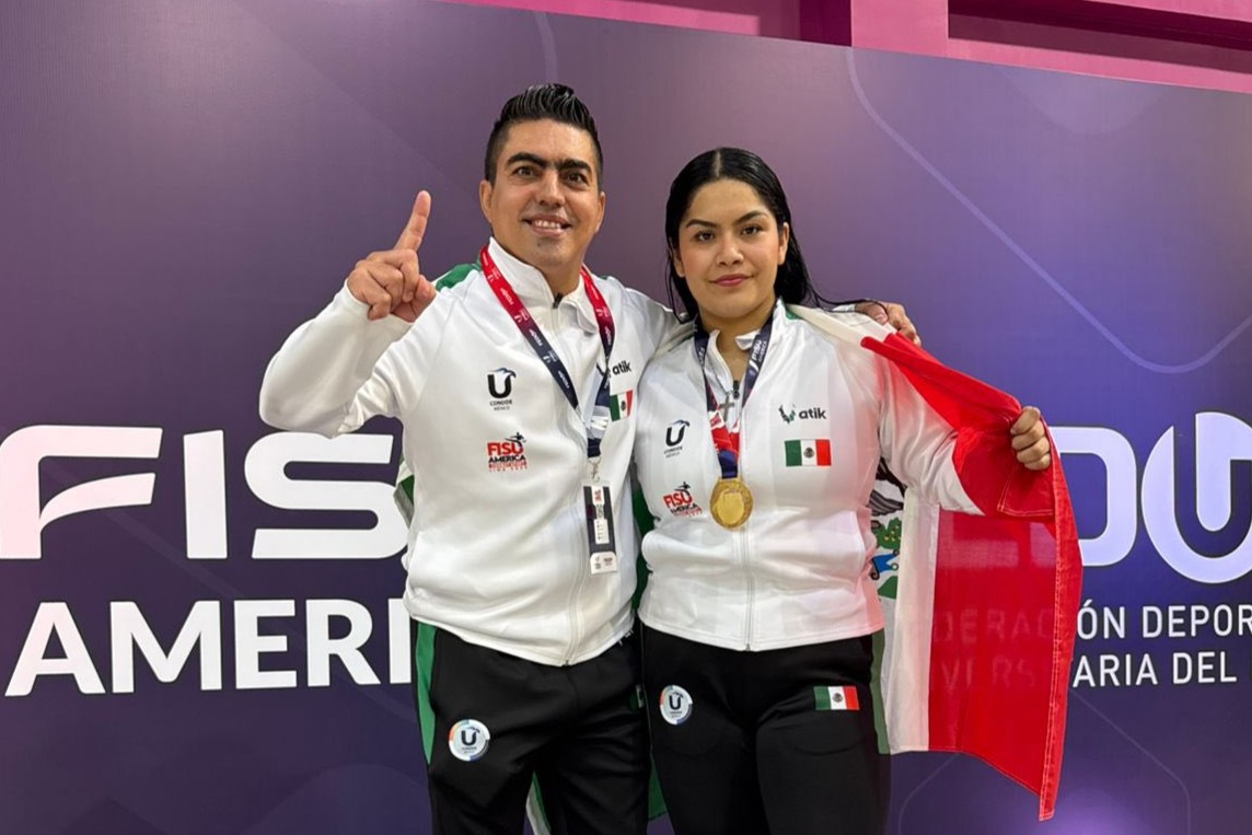 A su lado, el profesor Sinuhe Peniche, reconocido entrenador quintanarroense, formó parte del cuerpo técnico de la Selección Mexicana Universitaria, aportando su experiencia y liderazgo en la preparación del equipo nacional.
