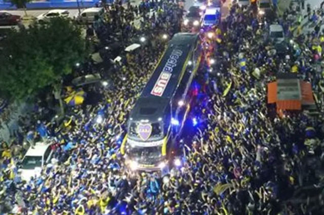 Para la final de la Libertadores solamente se vendieron 10 mil entradas enArgentina, 5 mil para cada club, no obstante, no todos tienen las posibilidades de viajar, sin embargo, eso no fue pretexto para dejar de mostrar el apoyo a su equipo y antes de partir hacía el aeropuerto una buena cantidad de aficionados xeneizes escoltaron el camión en medio de pirotecnia, cánticos y una tremenda fiesta.