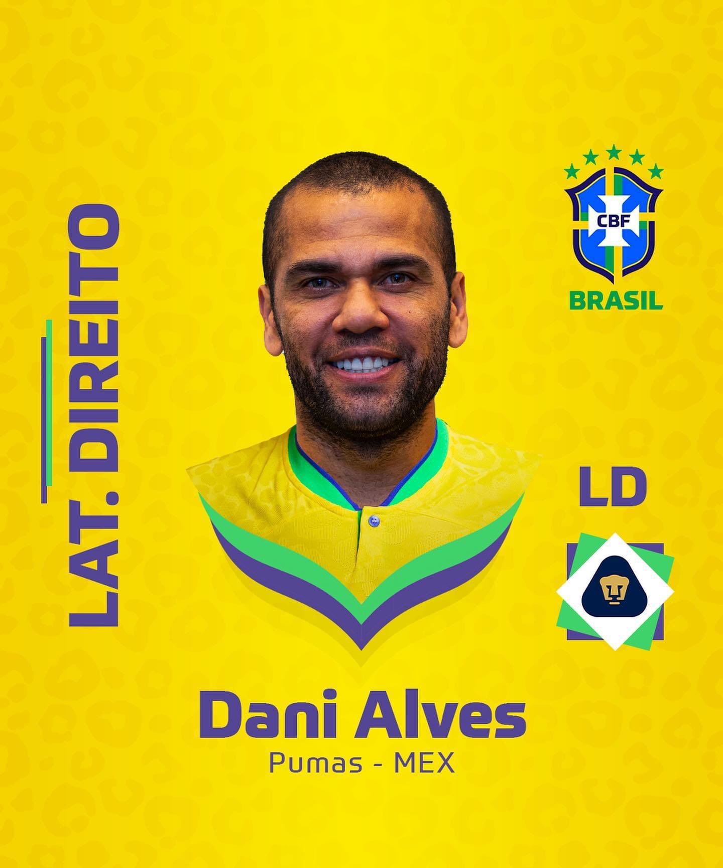 Ciudad de México.- El mal momento de los Pumas de la UNAM no influyó en las aspiraciones mundialistas del lateral brasileño, Dani Alves, quien forma parte de la lista de 26 convocados que dio Brasil para el Mundial de Qatar.