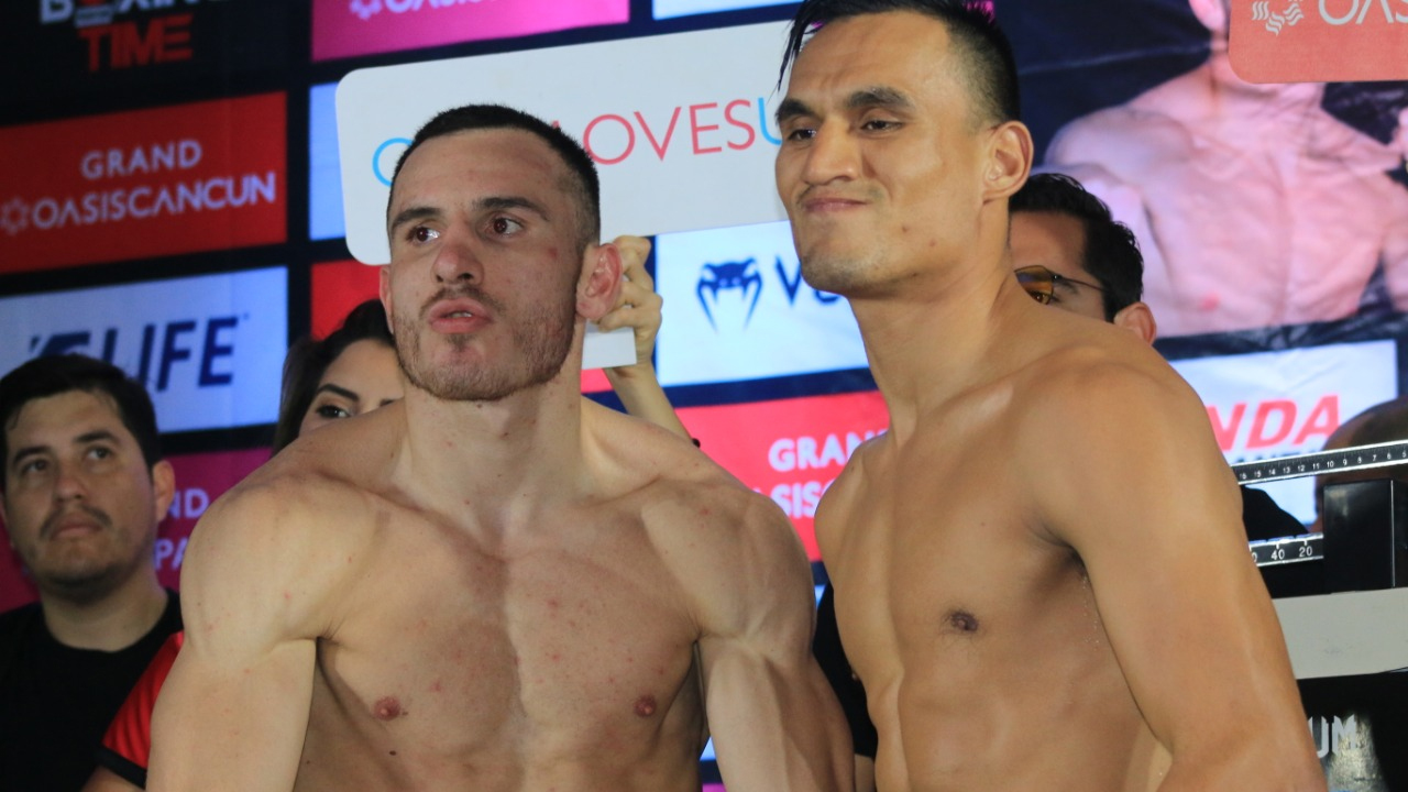 Cancún, Quintana Roo.- Tras cumplir sin problemas el protocolo reglamentario de pesaje en el Bar Fontainebleau del Hotel “The Pyramid Grand Oasis”, en Cancún, tanto el sinaloense Omar “Businessman” Chávez 38-5-1, 25 KO’s) como el regiomontano Oziel “Russo” Santoyo (10-1-1, 8 KO’s), quedaron listos para disputar su batalla de peso Medio, programada a 10 rounds, que ha generado gran expectación en el panorama boxístico nacional, y que puede tener trascendencia relevante para ambos guerreros.