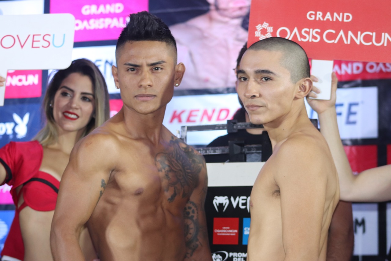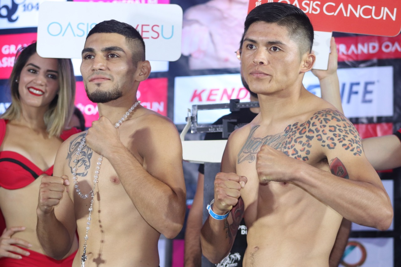 Cancún, Quintana Roo.- Tras cumplir sin problemas el protocolo reglamentario de pesaje en el Bar Fontainebleau del Hotel “The Pyramid Grand Oasis”, en Cancún, tanto el sinaloense Omar “Businessman” Chávez 38-5-1, 25 KO’s) como el regiomontano Oziel “Russo” Santoyo (10-1-1, 8 KO’s), quedaron listos para disputar su batalla de peso Medio, programada a 10 rounds, que ha generado gran expectación en el panorama boxístico nacional, y que puede tener trascendencia relevante para ambos guerreros.