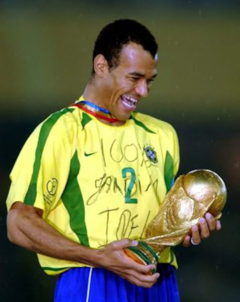 El capitán Cafú con el trofeo de campeones en Corea-Japón 2002.