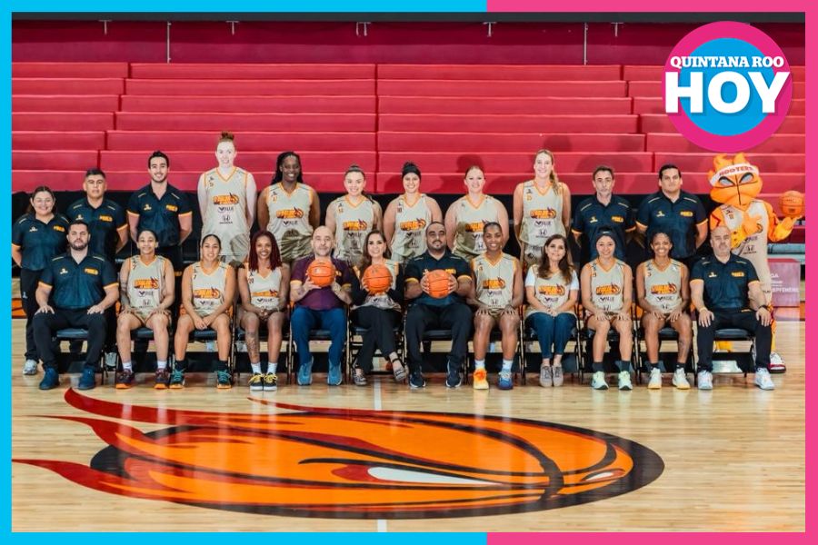 Cancún.- Teniendo como invitada especial a la gobernadora de Quintana Roo, Mara Lezama Espinosa, las jugadoras y staff completo de El Calor de Cancún, posó para la Foto Oficial de la Temporada 2026 de la Liga Caliente.Mx LNBP Femenil, teniendo como escenario el centro de la duela del Poliforum Cancún.
