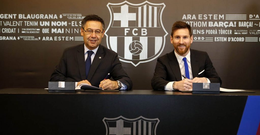 Lionel Messi aseguró su permanencia en el FC Barcelona al firmar un nuevo contrato que lo vincula con el club hasta el 30 de junio 2021 con una cláusula de rescisión de 700 millones de euros.