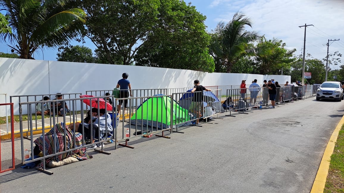 Para mayor seguridad, la Dirección de Tránsito cerró la circulación en la avenida Miguel Alemán, donde pasaron la noche estas personas para ser los primeros en la fila y tener un mejer lugar dentro de la explanada de la Apiqroo.