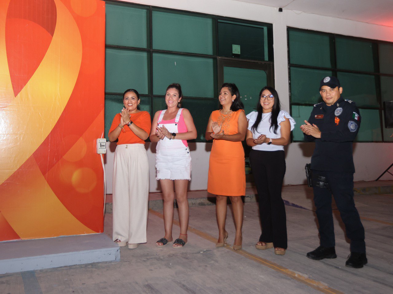 Luego, la Presidenta Municipal activó el encendido de luz naranja junto con Arlette Escudero Ordóñez, directora del Instituto Municipal de la Mujer; Paola Anayanci Varguez Ek, responsable del Área Especializada en Violencia Familiar y de Género del Centro de Salud Rural; la ciudadana Karina Robledo Zaragoza y Alfredo Edgardo Valdez de León, secretario de Seguridad Pública y Tránsito Municipal.