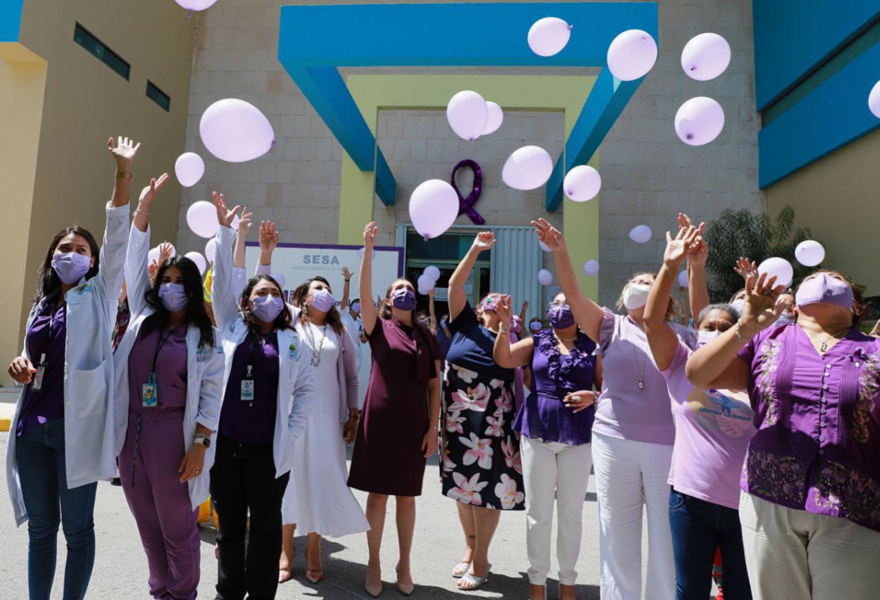 Esta mañana, a invitación de la dirección del Hospital Comunitario, la alcaldesa Gómez Ricalde, asistió al lugar para participar en la colocación del tradicional lazo morado, como muestra de apoyo a las mujeres y concientizar sobre la importancia de evitar la violencia de género. Asimismo, se realizó un “lazo humano” y exposición de fotografías de mujeres isleñas.