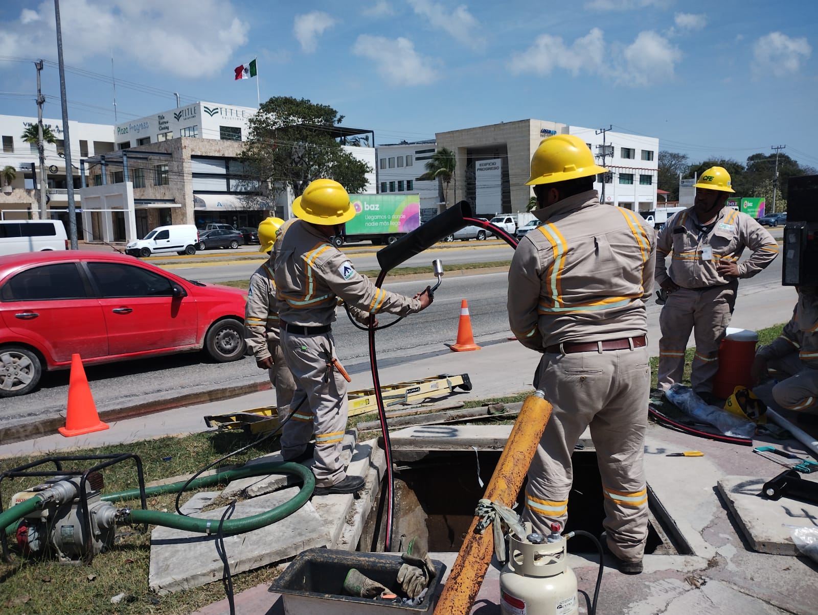 Sin embargo, el bulevar Playa del Carmen, cerca del acceso a Playacar, se observa a personal de la paraestatal realizando algunos trabajos.