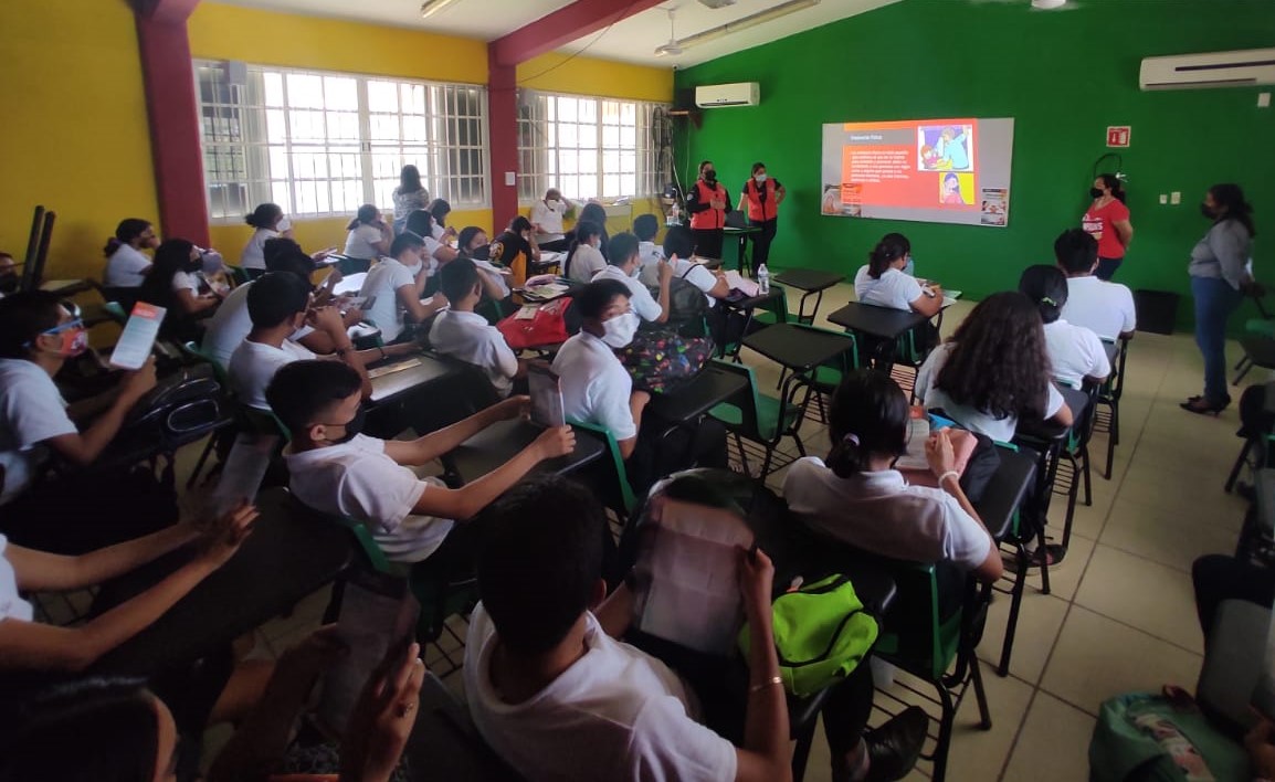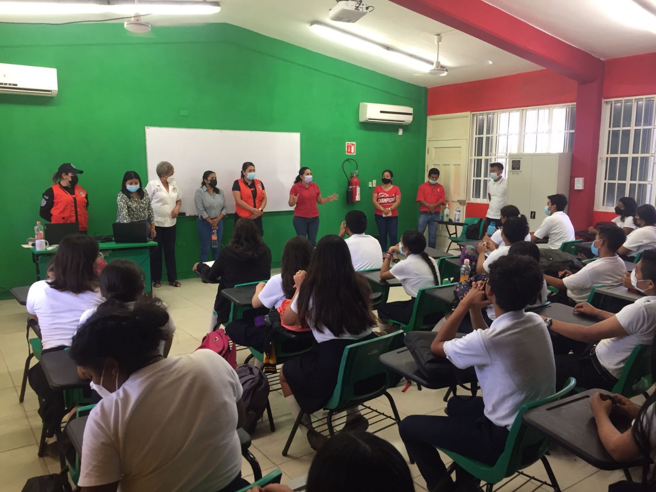 PUERTO MORELOS.- El Grupo Especializado de Atención a la Violencia Familiar y de Género (GEAVIG), perteneciente a la Secretaría municipal de Seguridad Pública y Tránsito, y el Sistema para el Desarrollo Integral de la Familia (DIF) de Puerto Morelos, ofrecieron una plática a estudiantes del Colegio de Bachilleres, para prevenir abusos sexuales en las escuelas.