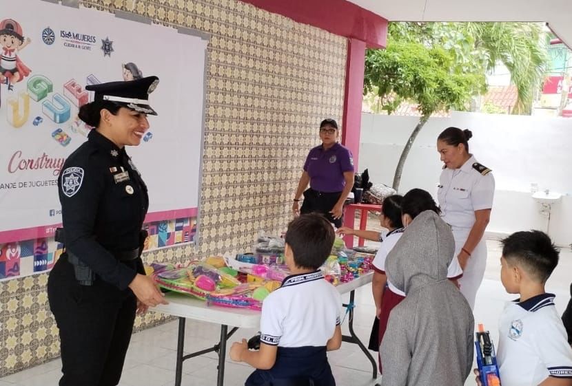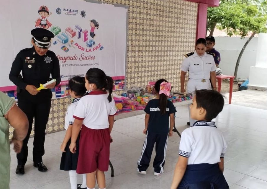 ISLA MUJERES.-  Con el firme compromiso de fomentar una cultura de paz en Isla Mujeres, el Gobierno Municipal que encabeza la alcaldesa Atenea Gómez Ricalde, a través de la Dirección General de Seguridad Pública y Tránsito, puso en marcha la campaña de canje de juguetes bélicos “Juguetes por la Paz”, en la primaria Andrés Quintana Roo de la Zona Insular.