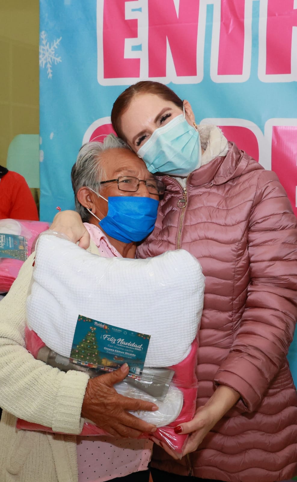Isla Mujeres, Quintana Roo.-En esta temporada de frentes fríos, en la que se registran bajas temperaturas en Isla Mujeres, la Presidente Municipal, Atenea Gómez Ricalde, entregó cobertores a las personas adultas mayores y con discapacidad de la Zona Continental.