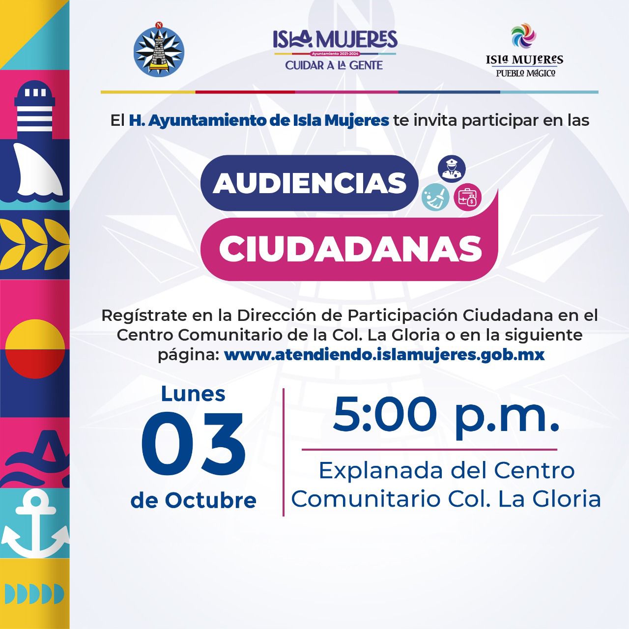 Isla Mujeres. Con el firme propósito de escuchar y atender de manera oportuna las peticiones, demandas y necesidades de la comunidad isleña, la presidente municipal de Isla Mujeres, Atenea Gómez Ricalde, encabezará la segunda Audiencia Ciudadana que se realizará en esta ocasión en la zona insular del municipio.