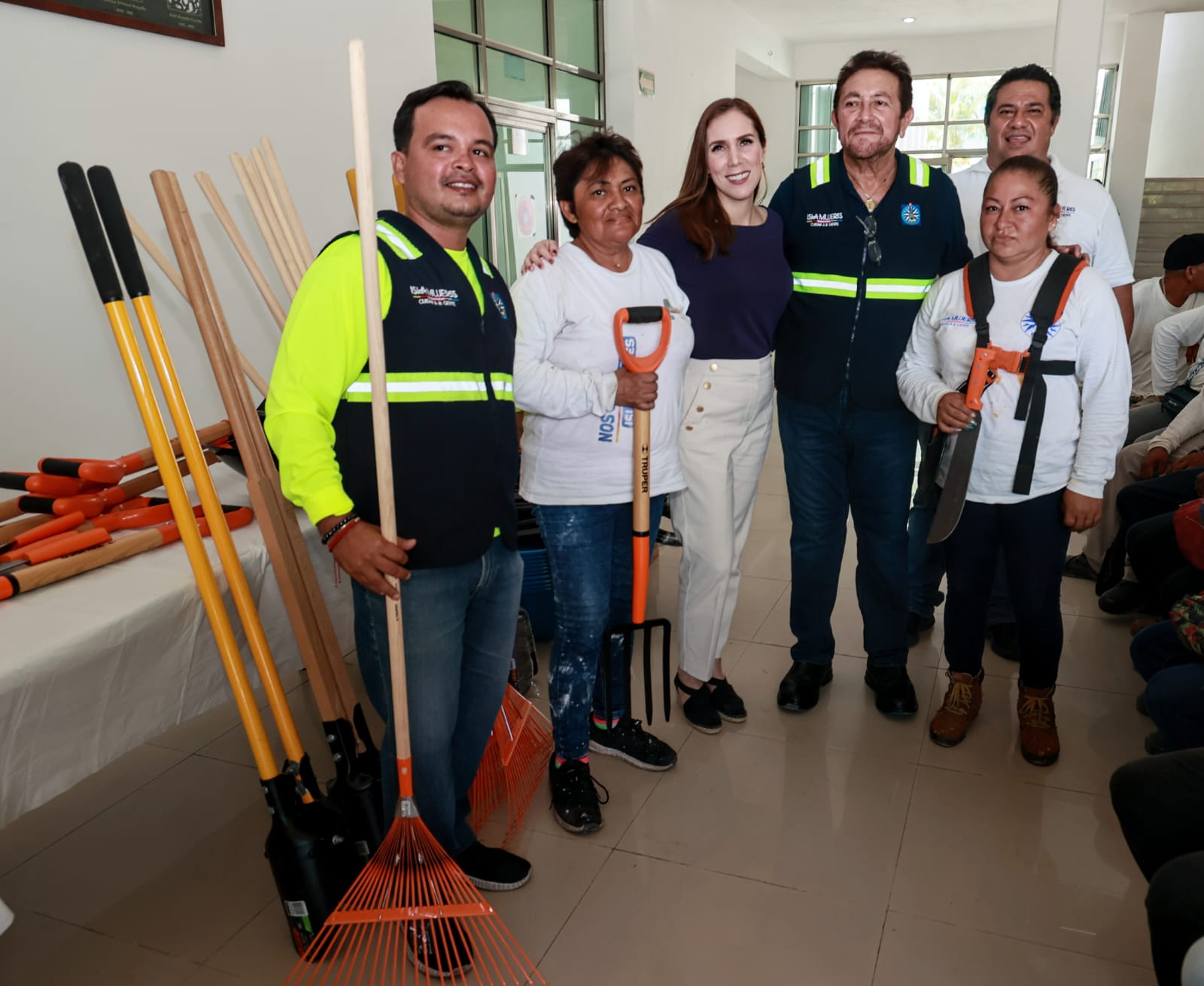 Además, entregó equipo y herramientas de trabajo, como carretillas, palas, escobas metálicas, machetes, entre otros, para otorgar áreas y espacios públicos dignos y seguros; acordes a un destino turístico de excelencia mundial