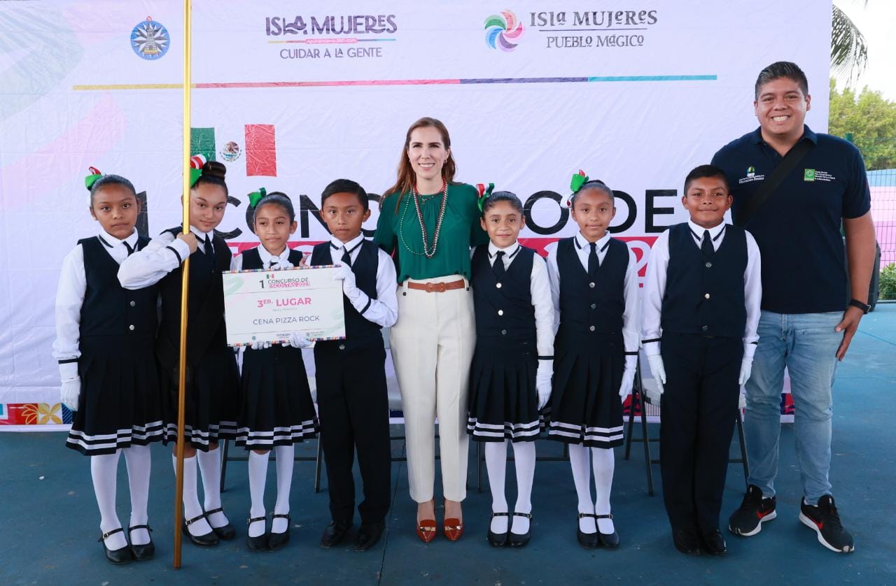 Isla Mujeres, Quintana Roo. – En el marco de la conmemoración del Día de la Bandera, la presidenta municipal, Atenea Gómez Ricalde, presidió el primer Concurso de Escoltas en el domo Bicentenario de la colonia El Cañotal en la zona insular.