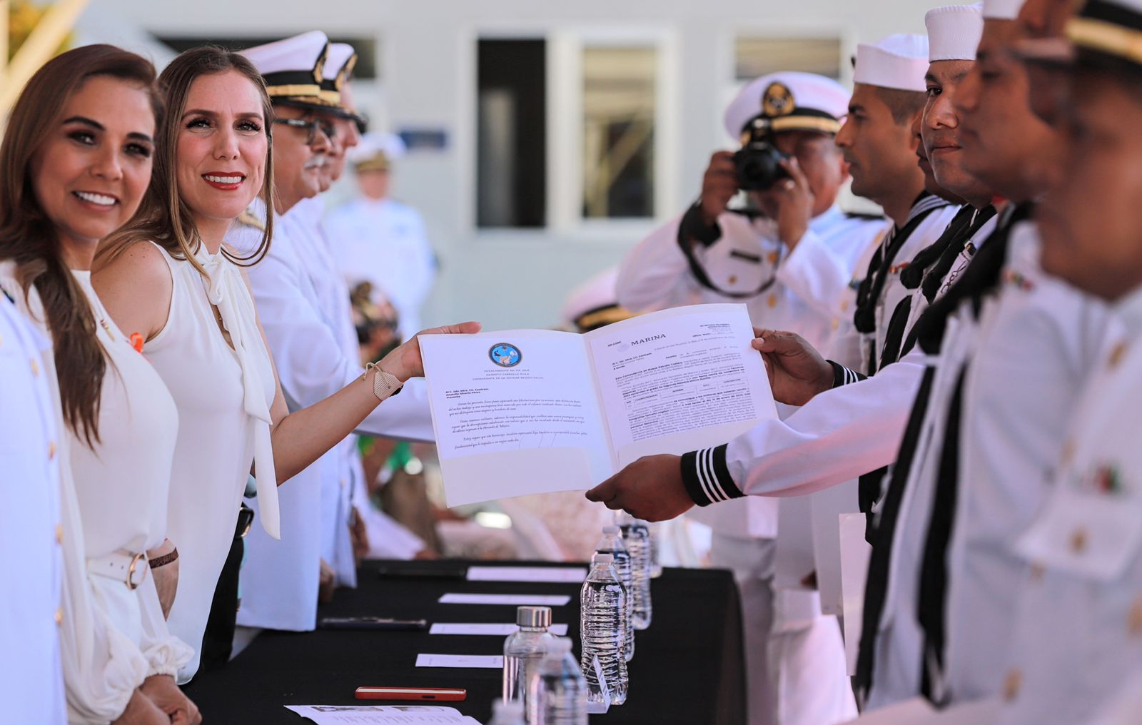 La alcaldesa asistió esta mañana a la Novena Región Naval, a la Ceremonia para conmemorar el 201 Aniversario de la Armada de México, donde acompañó a la Gobernadora del Estado, Mara Lezama Espinosa y al Comandante de la Novena Región Naval, Vicealmirante Gilberto Carballo Ávila.