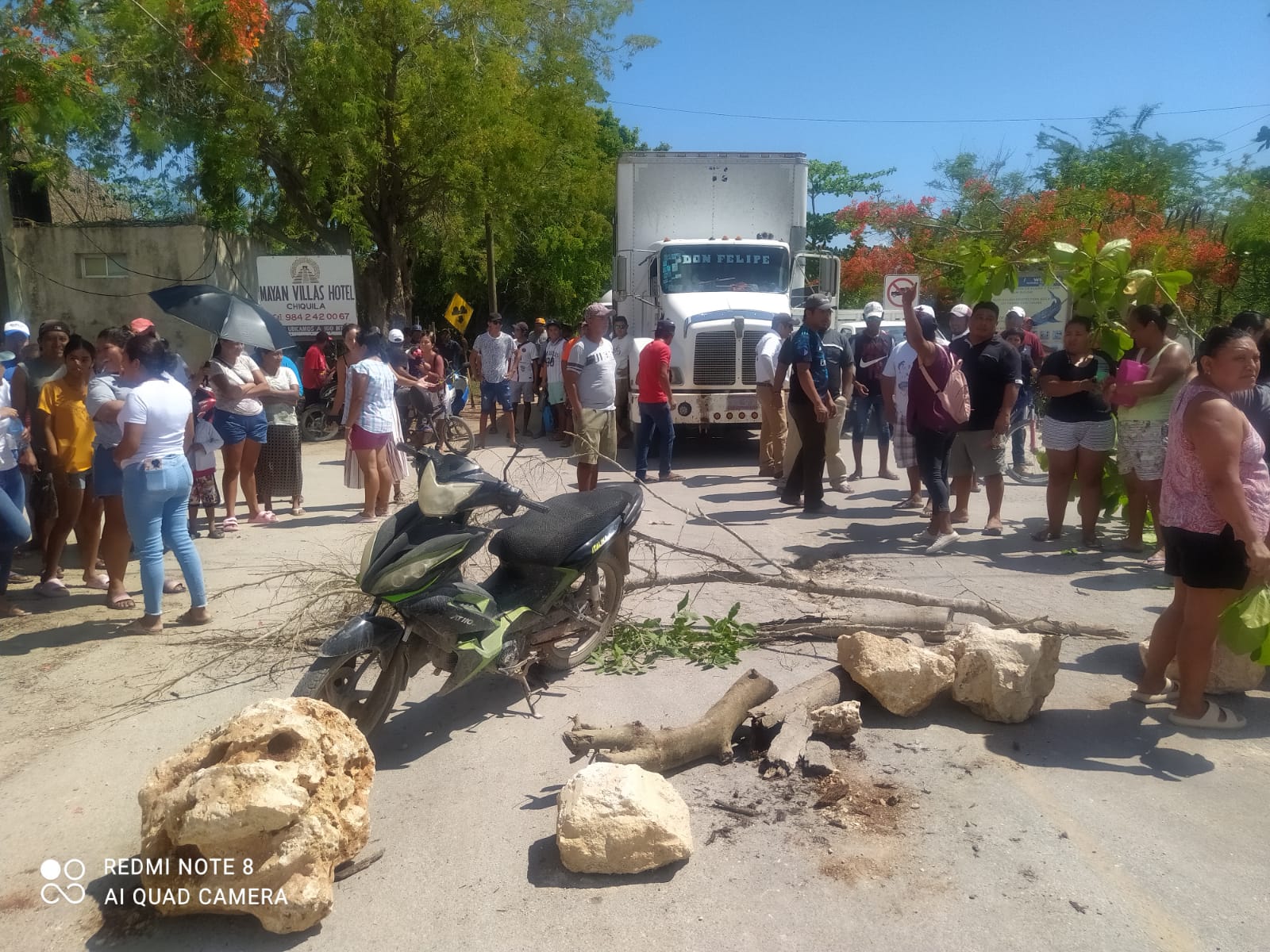 Los manifestantes colocaron piedras y palos en la vía de rodamiento para impedir la circulación hacia el Puerto de Chiquilá, acceso queda al embarcadero para el cruce a la isla Holbox afectando con ello la movilidad de turistas y de la proveeduría local.