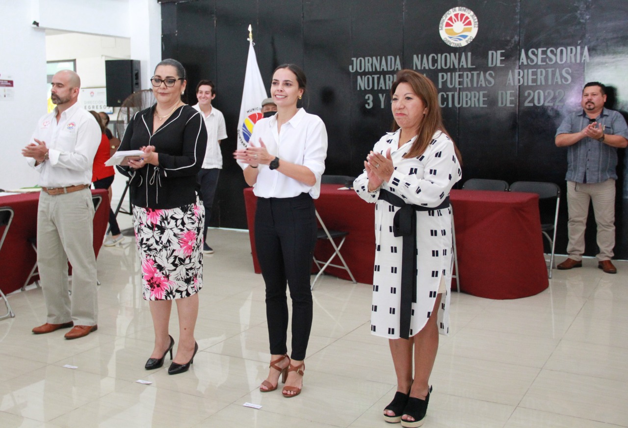 CANCÚN.- La presidenta municipal, Ana Patricia Peralta, constató el desarrollo de la “Jornada Nacional de Asesoría Notarial a Puertas Abiertas” en Cancún, que por segundo año consecutivo se realiza en el domo del Palacio Municipal para orientar y dar certeza jurídica a las y los cancunenses en temas de trámites notariales.
