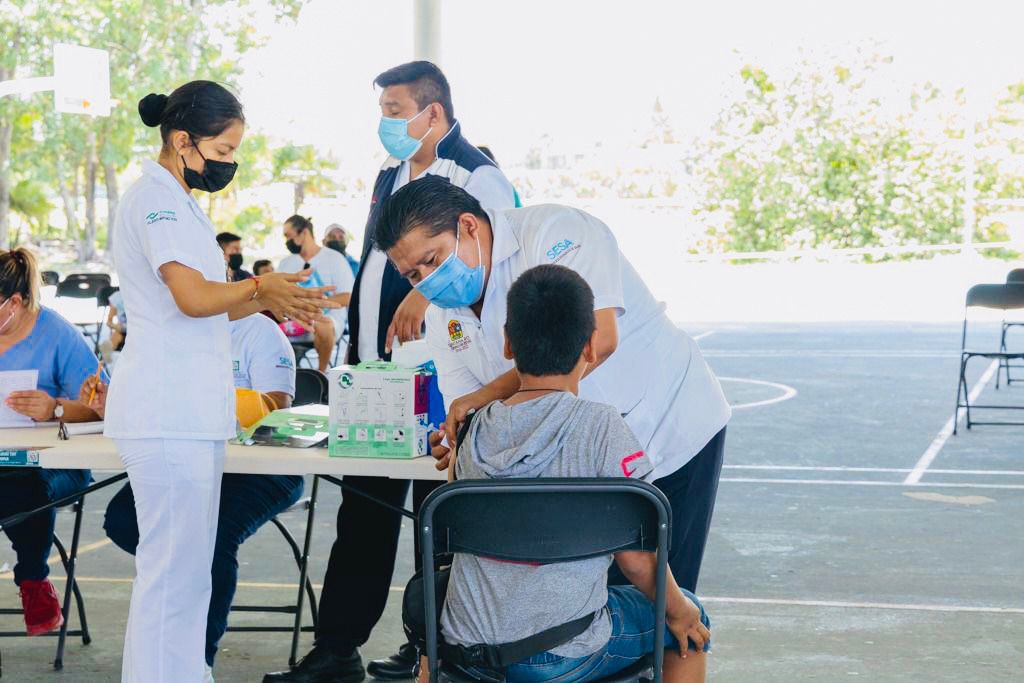Tulum.- La directora de salud del H. Ayuntamiento de Tulum, Sonia Vargas Torres, informó que la jornada de vacunación, segundas dosis en niños de 5 a 11 años, ha sido exitosa por la buena afluencia de ciudadanos que llegaron al domo de la unidad deportiva.