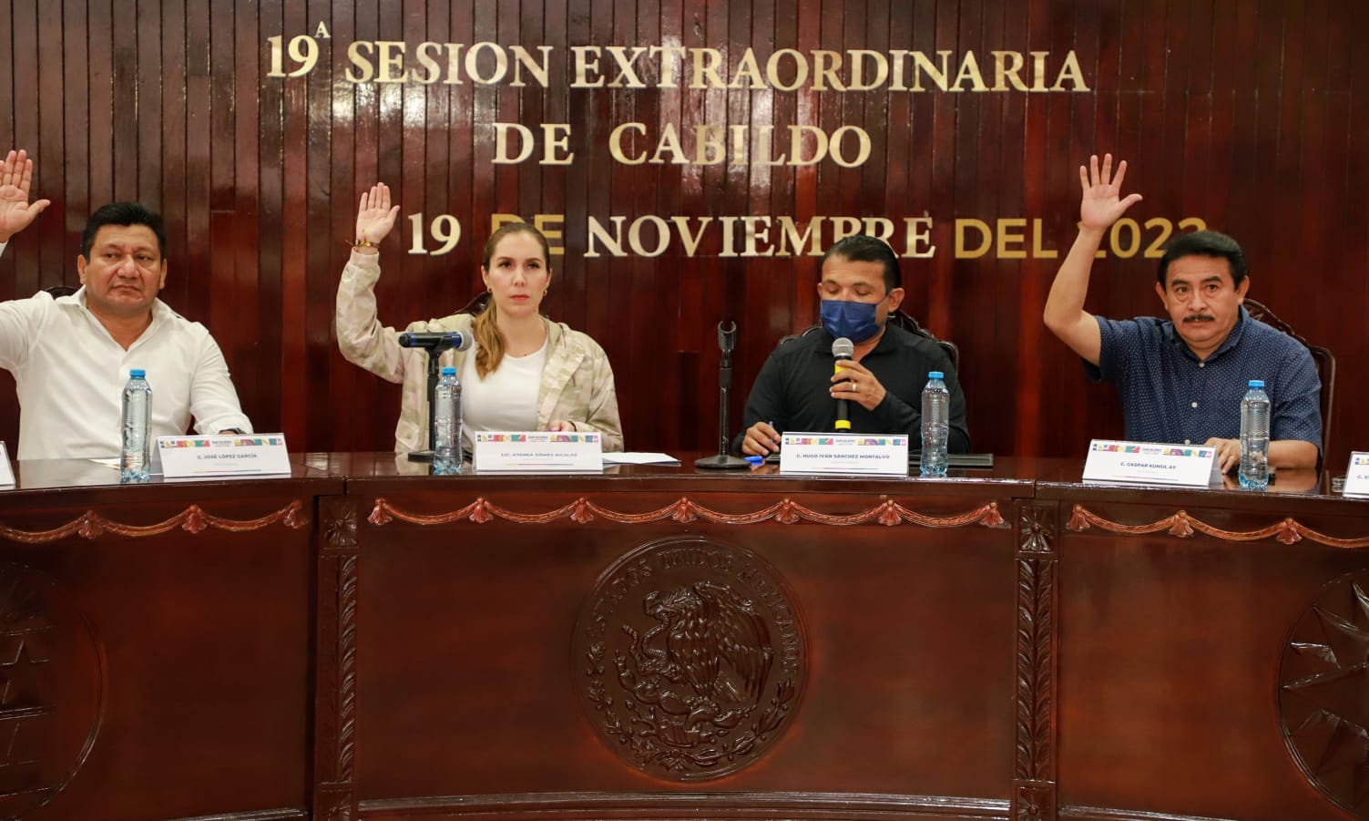 Isla Mujeres.- El Cabildo de Isla Mujeres refrendó su apoyo a la iniciativa presentada por la Gobernadora del Estado, Mara Lezama Espinosa, para eficientar el manejo de los recursos públicos, al aprobar por mayoría de votos durante la 19ª. Sesión Extraordinaria de Cabildo, el acuerdo por el que se reforman y adicionan diversas disposiciones de la Constitución Política del Estado Libre y Soberano de Quintana Roo.