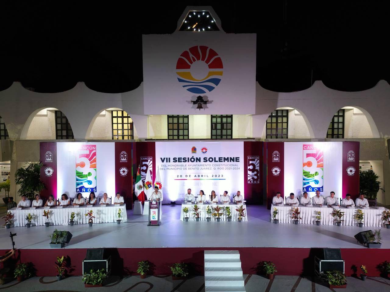 Cancún.- “En Cancún tenemos una ruta clara hacia el futuro, sabemos dónde estamos y hacia dónde queremos ir, hoy estamos de pie ante nuestro destino y está en nosotros construir el Cancún que queremos, en cada una de nuestras acciones, en cada uno de nuestros hogares, en cada uno de nuestros sueños”, enfatizó la Presidenta Municipal, Ana Paty Peralta, al encabezar la Séptima Sesión Solemne por el 53 Aniversario de la fundación de Cancún.