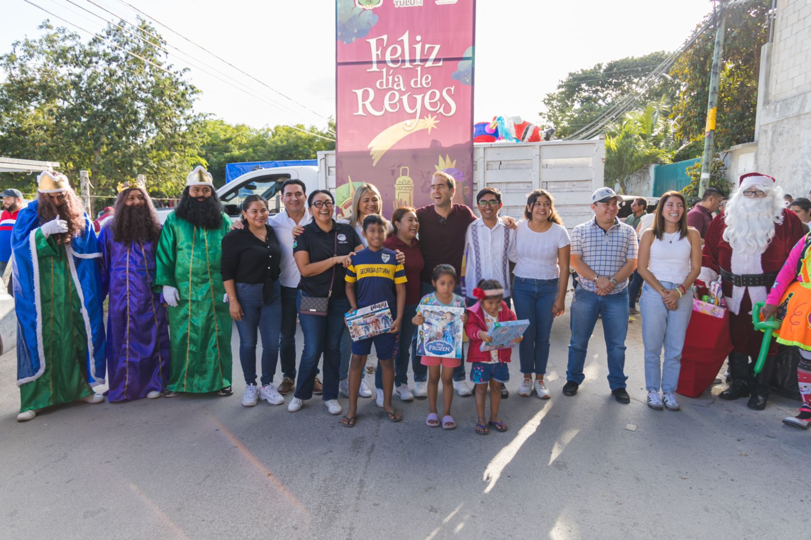 Las familias de la colonia Tumben-Kaa, Ejido, Xulkaa, Palmas, Marites, Yaax Tulum, Cristal, Triunfadores, Itzimna y Aldea Tulum, disfrutaron del encuentro con los tres reyes magos, Gaspar, Melchor y Baltazar que acompañaban al edil durante este recorrido que permitió a los niños y niñas, momentos de felicidad y el cumplimiento de un presente.