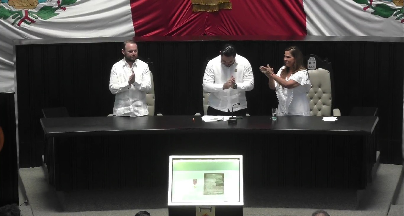 CHETUMAL.- Los tres poderes del Estado celebraron hoy una Sesión Solemne en el recinto Legislativo con motivo del XLIX Aniversario de la Promulgación de la Constitución Política de Quintana Roo, donde estuvieron Mara Lezama Espinosa, del Ejecutivo; Heyden Cebada Rivas, del Judicial y Humberto Aldana Navarro del Legislativo.