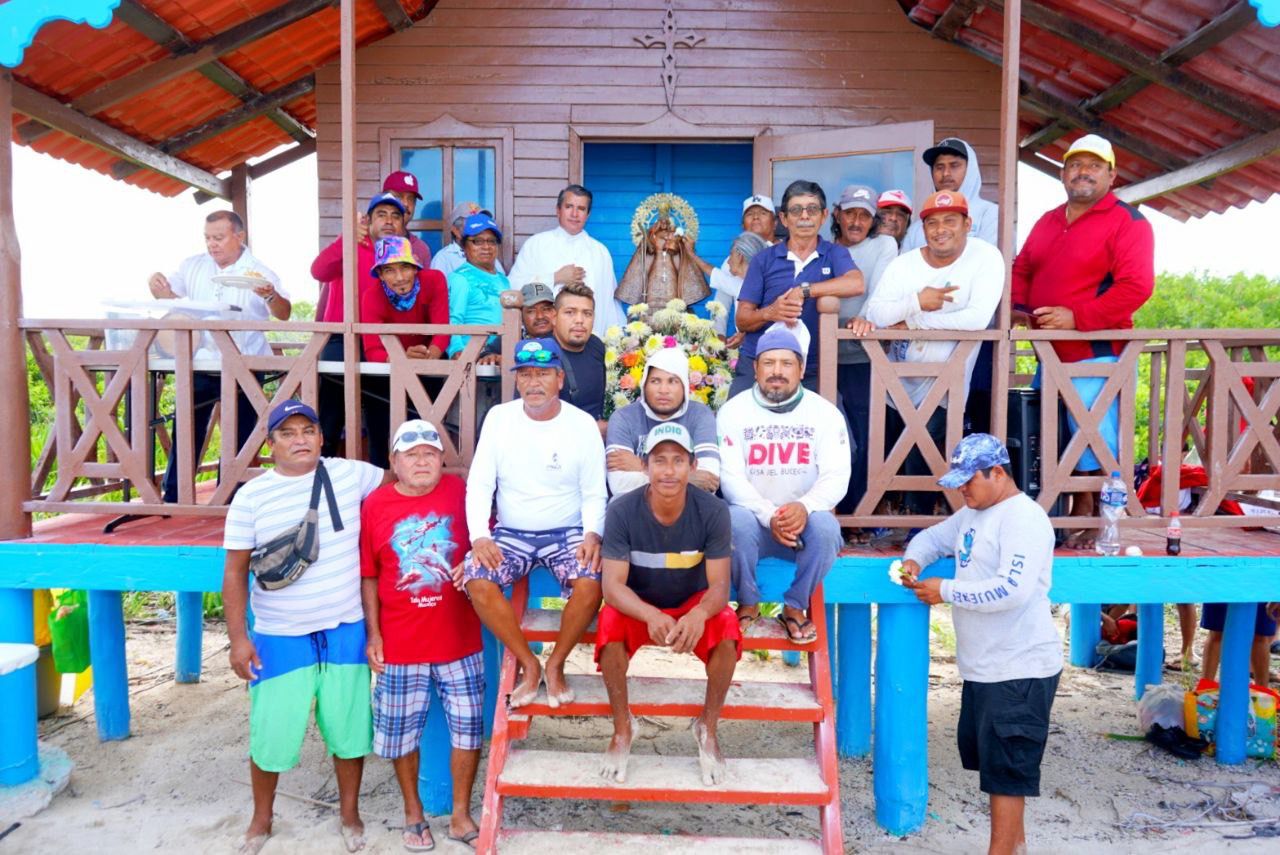 En Isla Contoy todo estaba listo para colocar la imagen de la Virgen en su nicho en la Capilla de la Caridad del Cobre que se ubica en el Campamento de Pescadores, en donde se ofició una misa en su honor, de esta forma, los pescadores agradecieron a la Reina de los Mares y del Cielo por todas las bendiciones que han recibido.