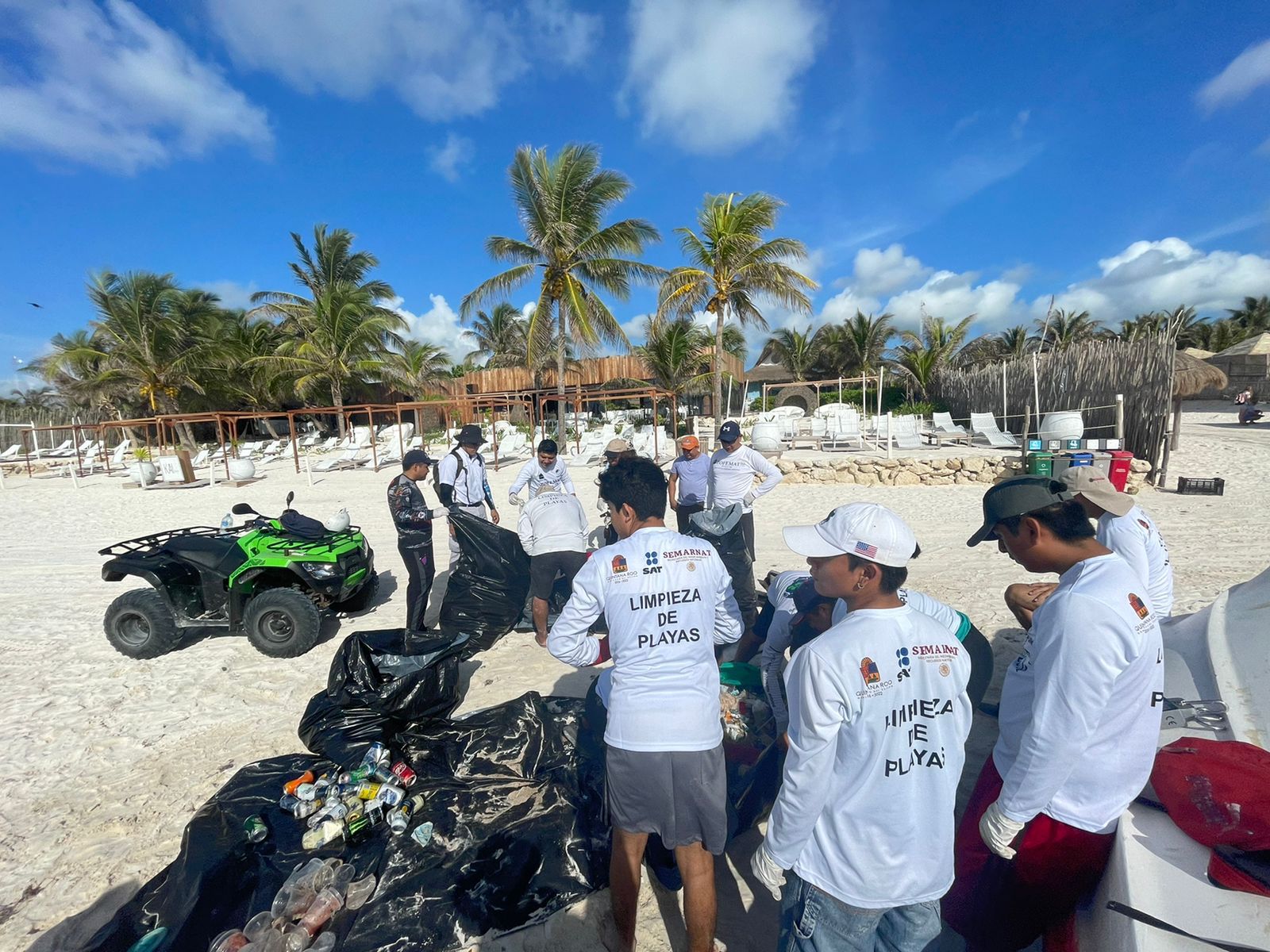 Tulum.- Al conmemorar el día mundial de la gente de mar, el gobierno municipal de Marciano Dzul Caamal, a través de la dirección de Zofemat llevó a cabo en coordinación con la comunidad, la limpieza de playas en pro de la conservación y en beneficio del turismo local y extranjero.
