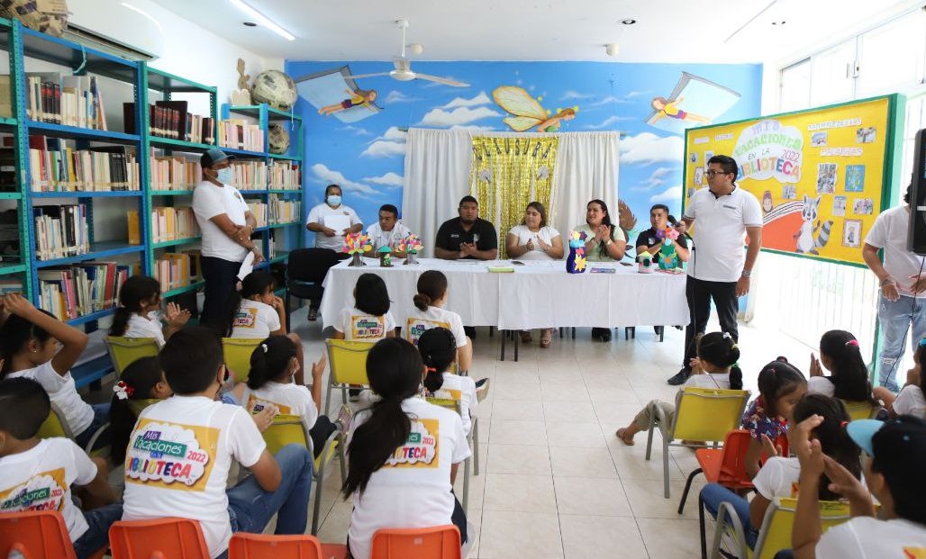 PUERTO MORELOS. Con la entusiasta participación de casi 100 niñas y niños de entre 6 y 12 años de edad, llegó a su fin el Curso de Verano “Mis Vacaciones en la Biblioteca 2022”, en el que durante dos semanas los menores se conectaron con la naturaleza, la cultura y la historia a través de los libros y otras actividades.