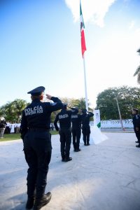 Durante la ceremonia se rindieron honores a la bandera y se entonaron los himnos a Quintana Roo y Nacional Mexicano.