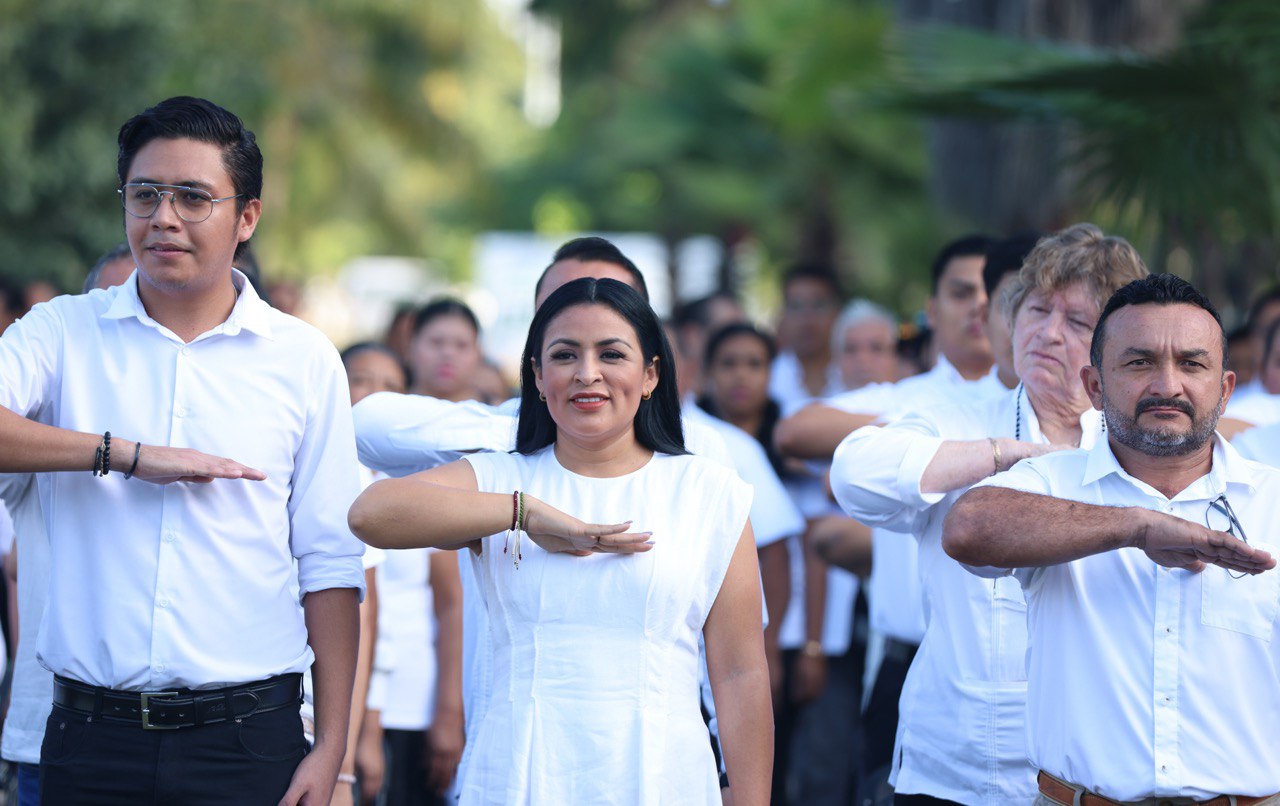 “Quiero invitarlos a reflexionar sobre el camino recorrido, los logros alcanzados y, sobre todo, a renovar nuestro compromiso con la transformación y la unidad de nuestro Estado”, dijo la Presidenta Municipal ante funcionarios públicos, regidores y ciudadanos reunidos frente a la sede del Ayuntamiento.