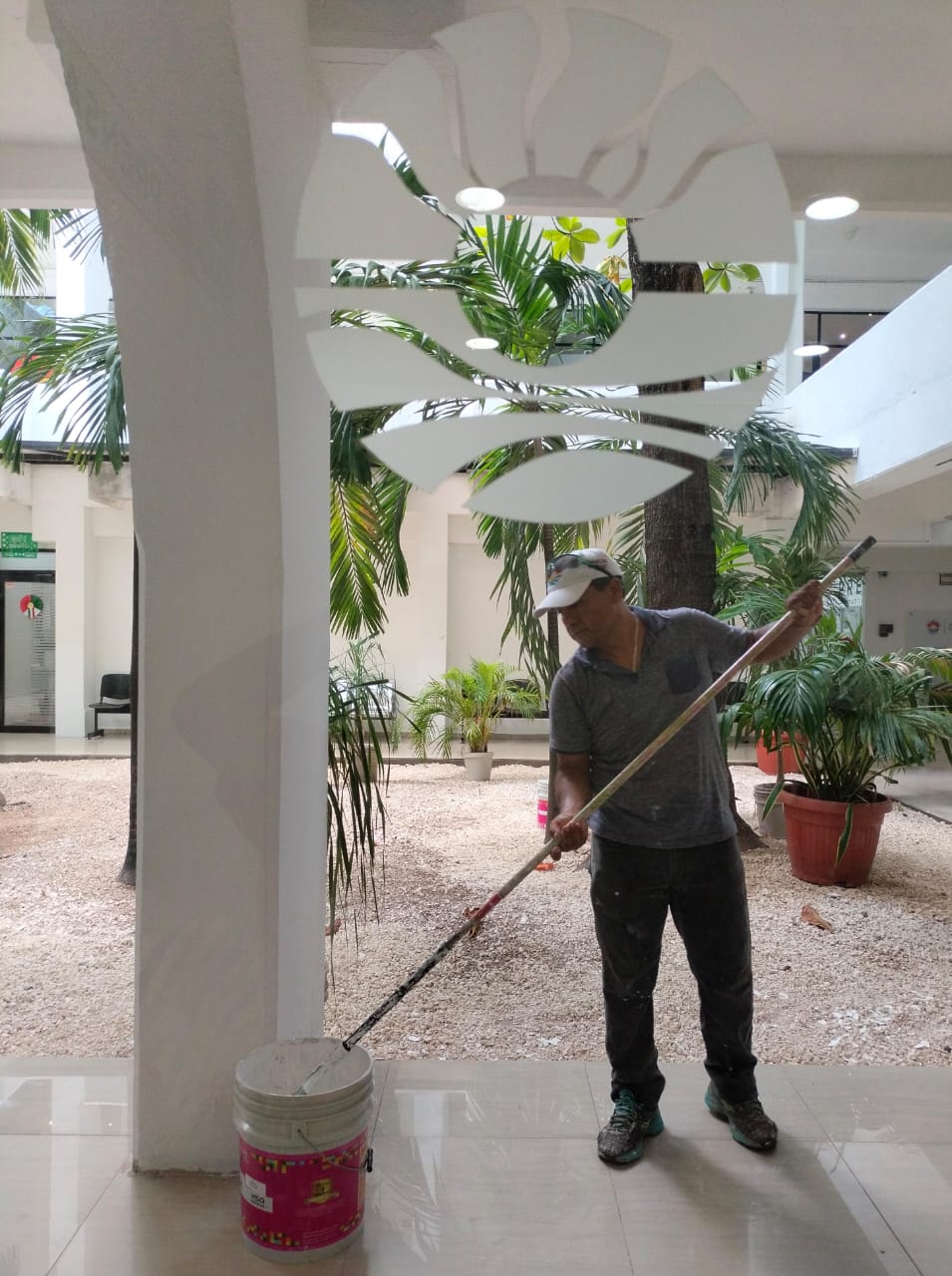 A marchas forzadas, personal de mantenimiento realiza la rehabilitación de pisos, sanitarios, herrería, iluminación, colocación de toldos y reposición de luminarias.