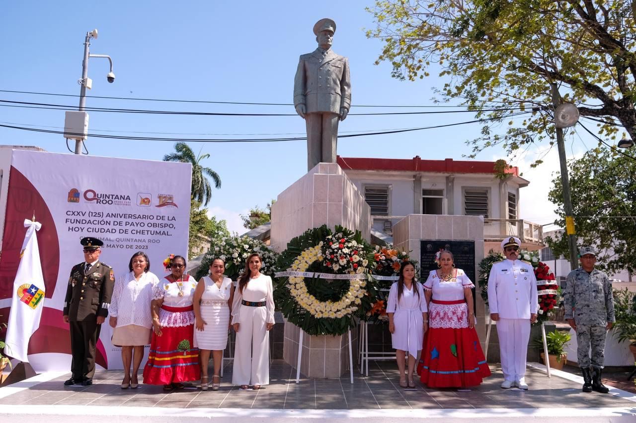 Antes de depositar una ofrenda floral y hacer una guardia de honor, la titular del Ejecutivo precisó que se vislumbra mucho éxito para Chetumal y el sur del Estado, con el Tren Maya que impulsará crecimiento y desarrollo, con las zonas arqueológicas que todo el mundo tiene derecho a conocer, con la recuperación la rica historia y patrimonio cultural de la región.