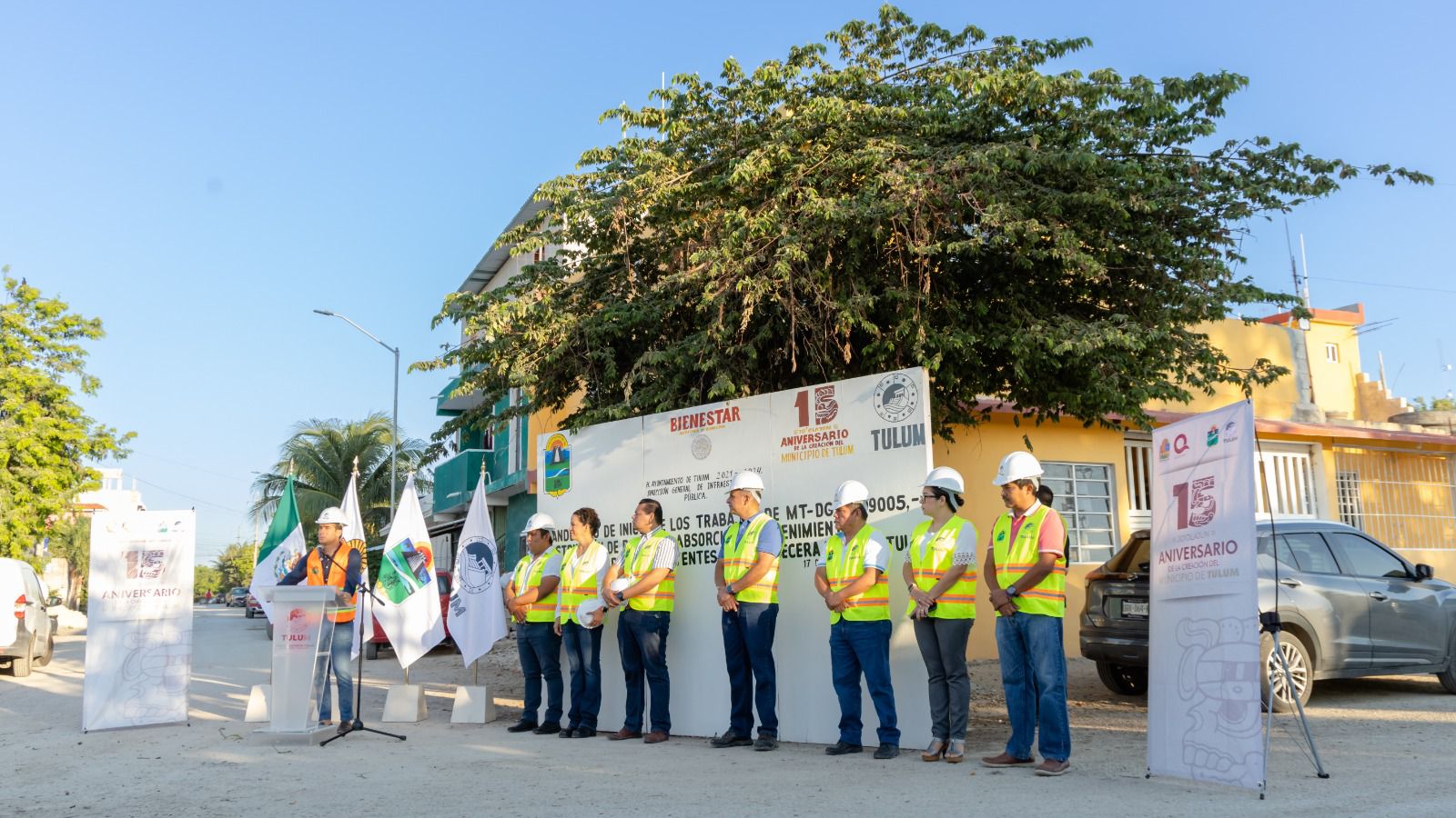 Tulum.- El Presidente Municipal de Tulum, Diego Castañón Trejo, dio banderazo de inicio a dos importantes obras que fortalecerán la infraestructura urbana, se trata de la Pavimentación de Calles en la colonia La Veleta y la construcción de nuevos pozos de absorción, mantenimiento y desazolve de los existentes en la cabecera municipal.