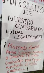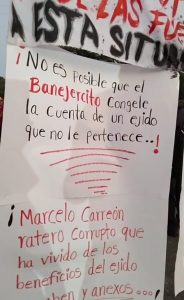 Agregó que los inconformes no permitirán que el actual comisariado siga al frente de la comuna, pues aseguró que, sin tener personalidad jurídica, presuntamente ha vendido el patrimonio del ejido y modificado la cuenta interbancaria del mismo.
