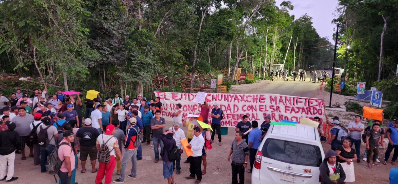Campesinos y campesinas del núcleo ejidal Chunyaxche, mantuvieron bloqueado el paso hacía el Aeropuerto Internacional “Felipe Carrillo Puerto”, debido al incumplimiento del gobierno federal en reconocer más de cinco mil hectáreas de tierras que serían vendidos para el proyecto Tren Maya.