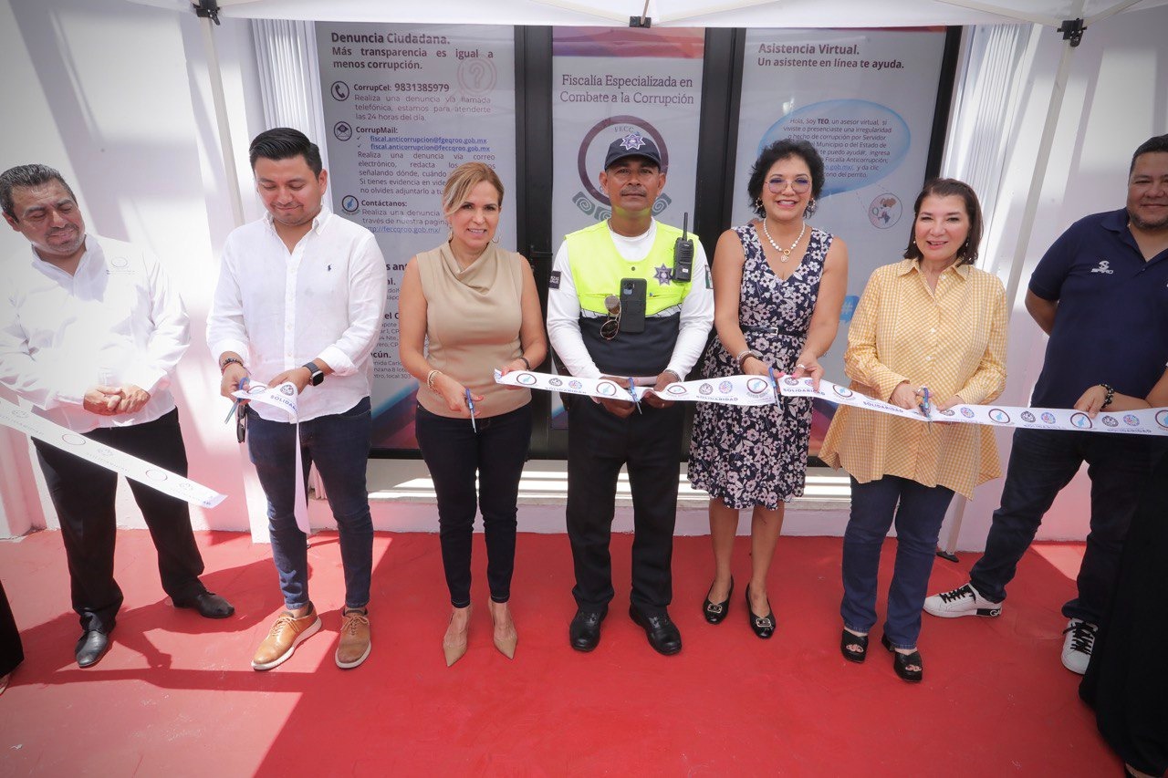 Playa del Carmen, Solidaridad.- En trabajo coordinado, la presidenta Lili Campos inauguró, junto con la titular de la Fiscalía Especializada en Combate a la Corrupción del Estado, la extensión de las oficinas de esta institución para acercar y optimizar la prestación de servicios y atención al público. Está ubicada en los locales bajo las gradas de la Unidad Deportiva Mario Villanueva.