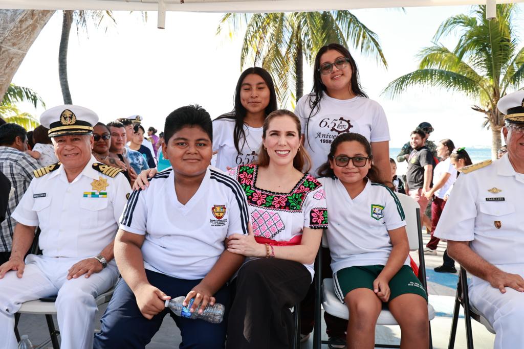ISLA MUJERES.- En un ambiente familiar y con la asistencia de más de mil 500 personas esta mañana, la presidenta municipal de Isla Mujeres, Atenea Gómez Ricalde, encabezó el tradicional desfile cívico-deportivo en conmemoración del CXIII (113) Aniversario de la Revolución Mexicana en la zona insular del municipio.