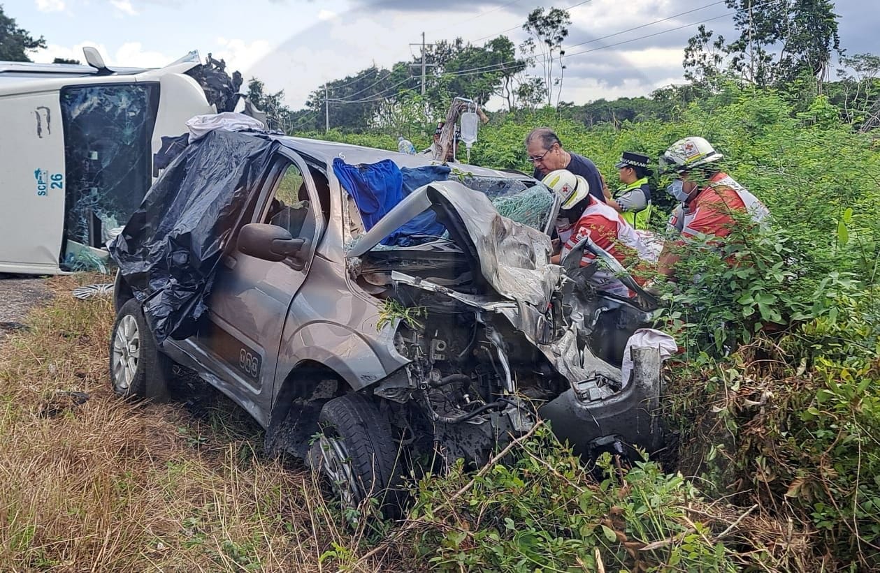 Posteriormente, al intentar reincorporarse a la carpeta asfáltica, el vehículo fue impactado por la combi de transporte público que estaba circulando de sur a norte. A raíz del impacto, el conductor del vehículo particular terminó entre los fierros retorcidos y más tarde perdió la vida, al llegar al Hospital General de Felipe Carrillo Puerto.