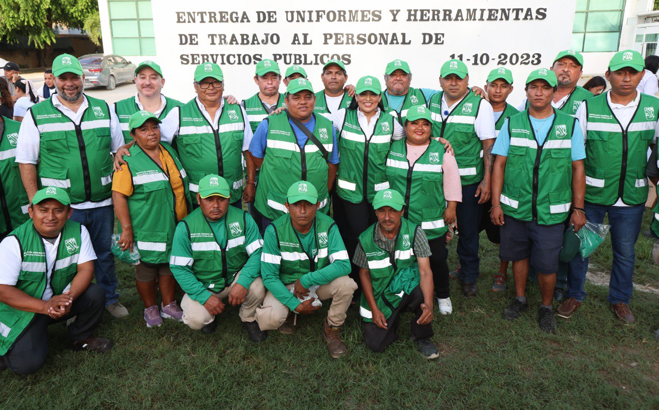 Puerto Morelos, Quintana Roo- Hoy quiero hacer un merecido reconocimiento a las mujeres y hombres que todos los días se levantan a temprana hora, sin importar las inclemencias climatológicas, para embellecer nuestro municipio y atender las solicitudes ciudadanas, destacó la presidenta municipal Blanca Merari Tziu Muñoz, al entregar equipamiento y uniformes al personal de la Dirección General de Servicios Públicos.
