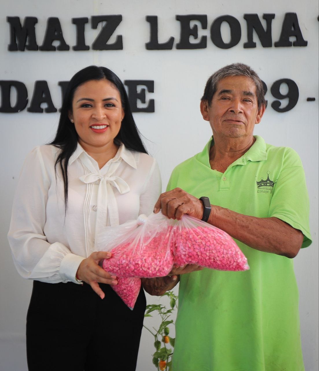 Leona Vicario.- Con el propósito de seguir impulsando la economía de las familias y la reactivación del campo de Leona Vicario, la presidenta municipal Blanca Merari Tziu Muñoz entregó hoy semillas de maíz mejoradas, exclusivamente para siembra, a productores de la localidad.