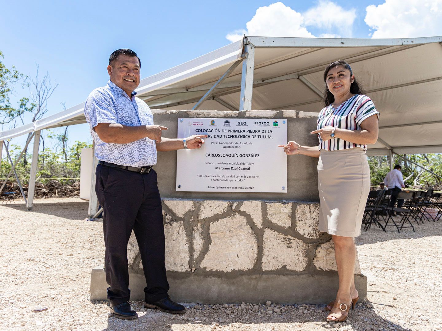 Tal y como lo anunció en su I informe de gobierno, este lunes, el presidente municipal Marciano Dzul Caamal puso la primera piedra junto al gobernador Carlos Joaquín como testigo de este logro educativo de las y los Tulumnenses.
