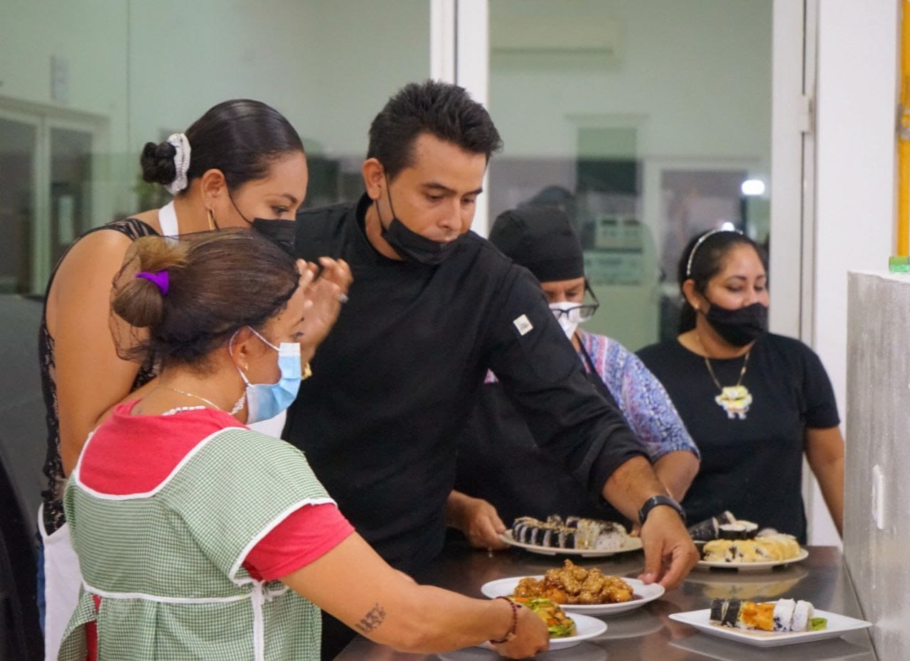 Herrera Osorio informó que en la evaluación final del curso se conformaron tres grupos para que cada uno realizara los platillos indicados por el maestro y entre ellos estuvieron Sésamo, Shushi, Pollo Agridulce, Chowfane, Rollos Primavera y Chowmei.